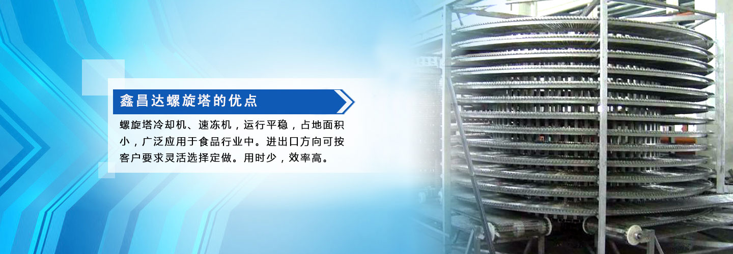 宁津县鑫昌达机械厂主营食品回盘线,面包螺旋冷却塔,输送机设备,面食品、菜卷、春卷、蔬菜、水果、肉食、油炸品、小包装食品的输送,分单塔和双塔多层不锈钢机身,占地面积小,输送量大,采用食品级螺旋网带易清洗和维护。要形成三到6个月之间对螺旋冷却塔进行定期检查,若是内部出现问题,应当由专业技术人员对其维修。